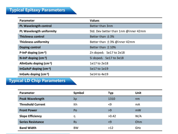 | Epiwafer Emission Range | Typically in the 1.3 μm to 1.55 μm range, suitable for optical communication |
