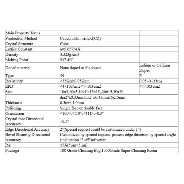 - The small bandgap width (0.67 eV) makes it suitable for infrared photoelectric detection and emission applications.